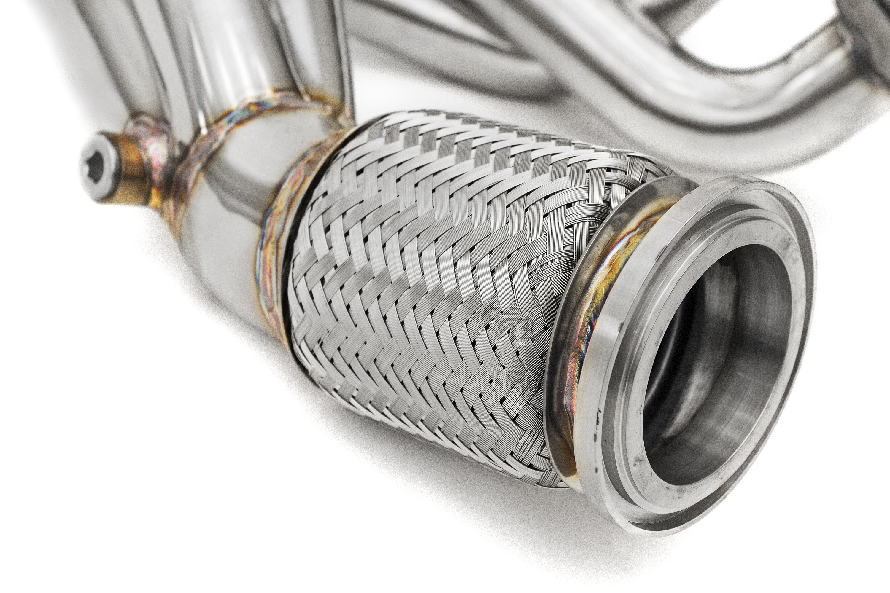 Flex bellows are added directly behind the main flanges to allow for proper fit during installation and to protect the headers from excess engine movement under load.
