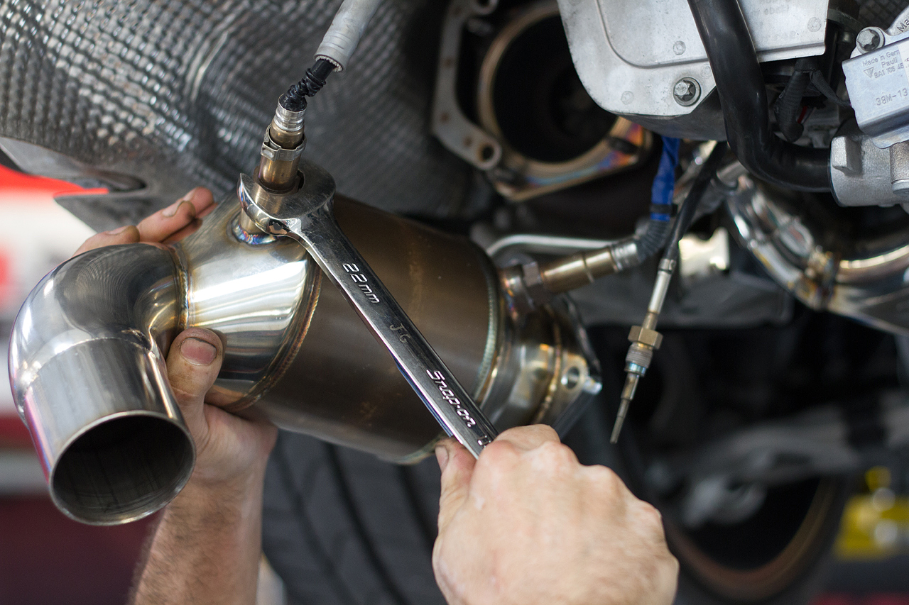 Installing the O2 sensors into the 200-cell HJS Sport Cats...