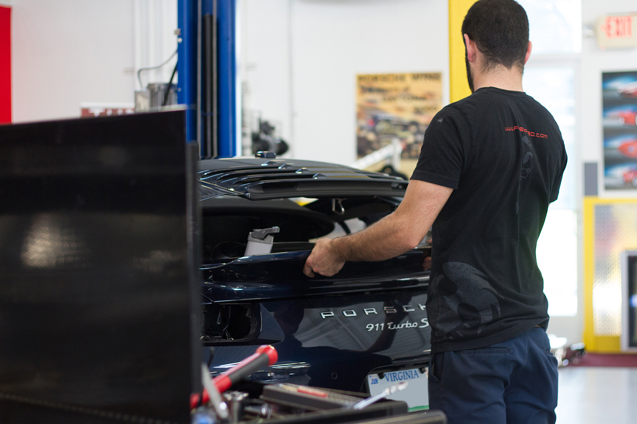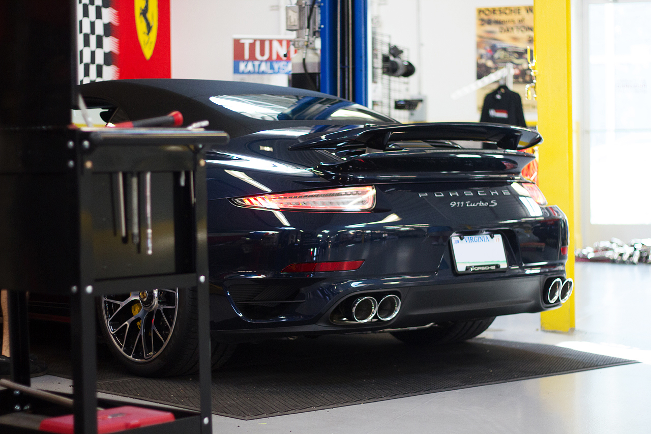 The owner made the drive all the way up from Virginia and took advantage of the Fabspeed Lounge to hang out while we performed the work on his 991TT. Once it was done, he couldn't get the grin off of his face. (It didn't hurt that he had ample time to experience the added power while testing out his Launch Control in our lot!)